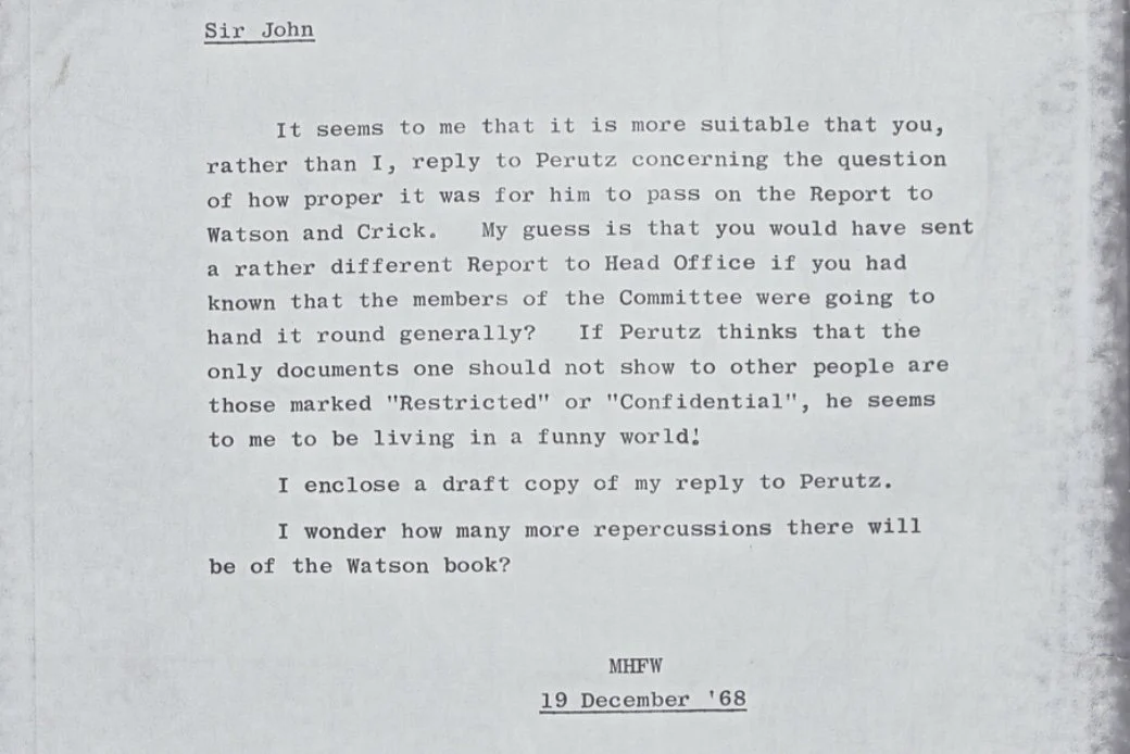 “If Perutz thinks that the only documents one should not show to other people are those marked “Restricted” or “Confidential”, he seems to me to be living in a funny world,” Wilkins wrote.